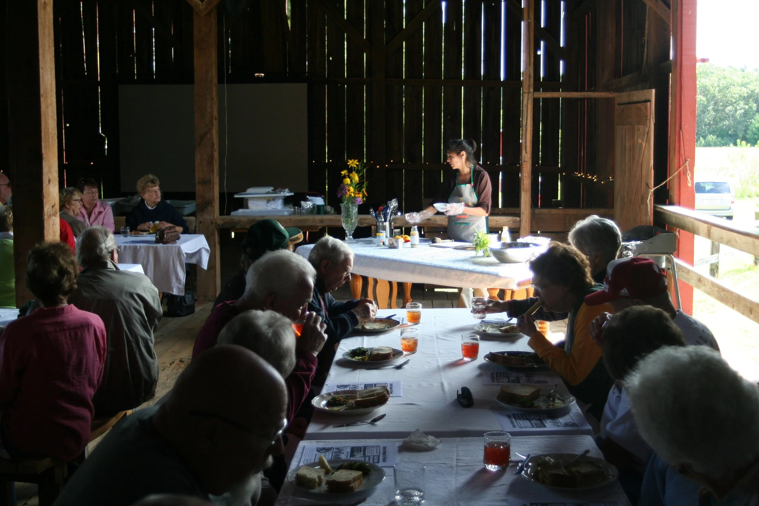 Our menu is thoughtfully set for the evening. We provide your meal, plates, dinnerware, and a seat at the community-style dining table. Dinners are plant-based, made with organic ingredients, and showcase our farm’s freshly picked produce with an emphasis on seasonal, locally grown foods. Picnics begin at 5:30 and dinners are served at 6:30. Come tour the farm, hike the trails, and socialize with fellow members in a relaxed, welcoming setting.